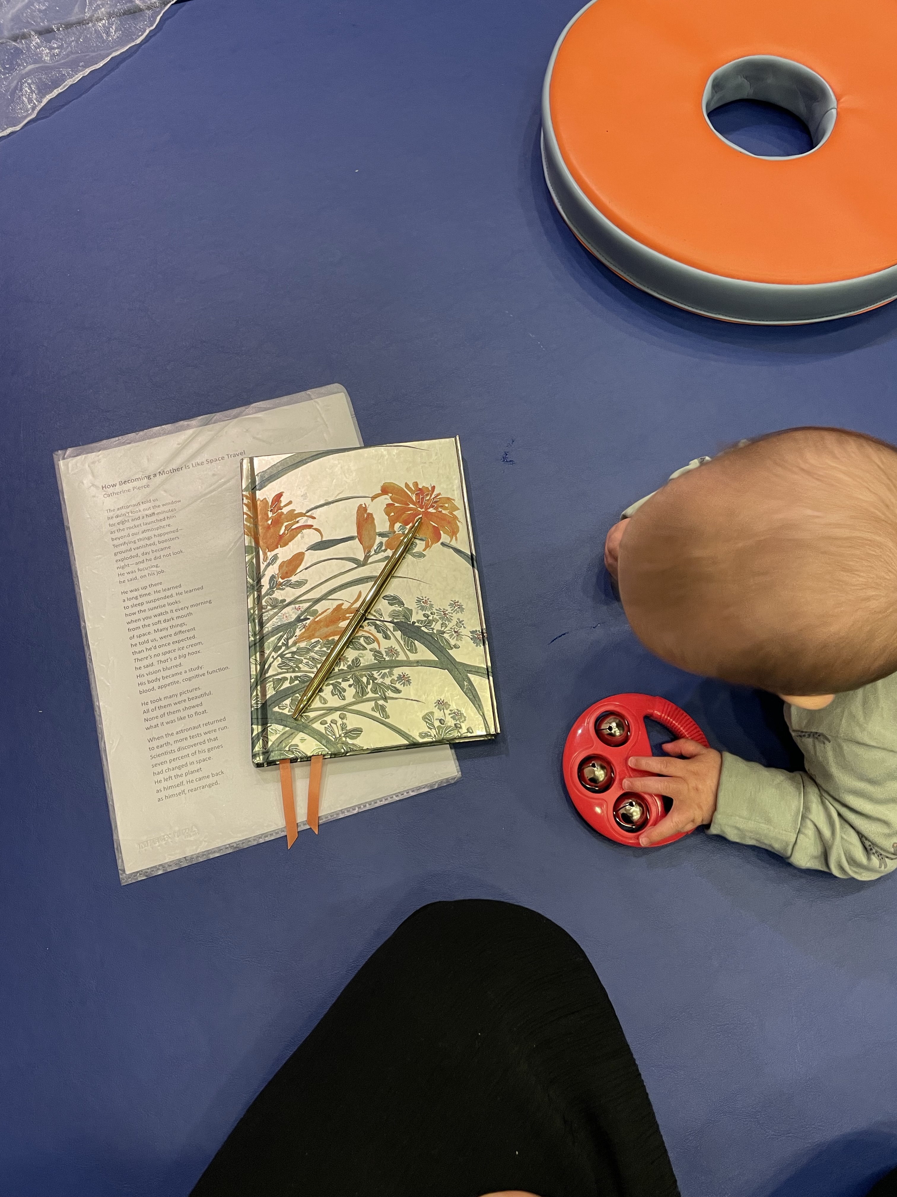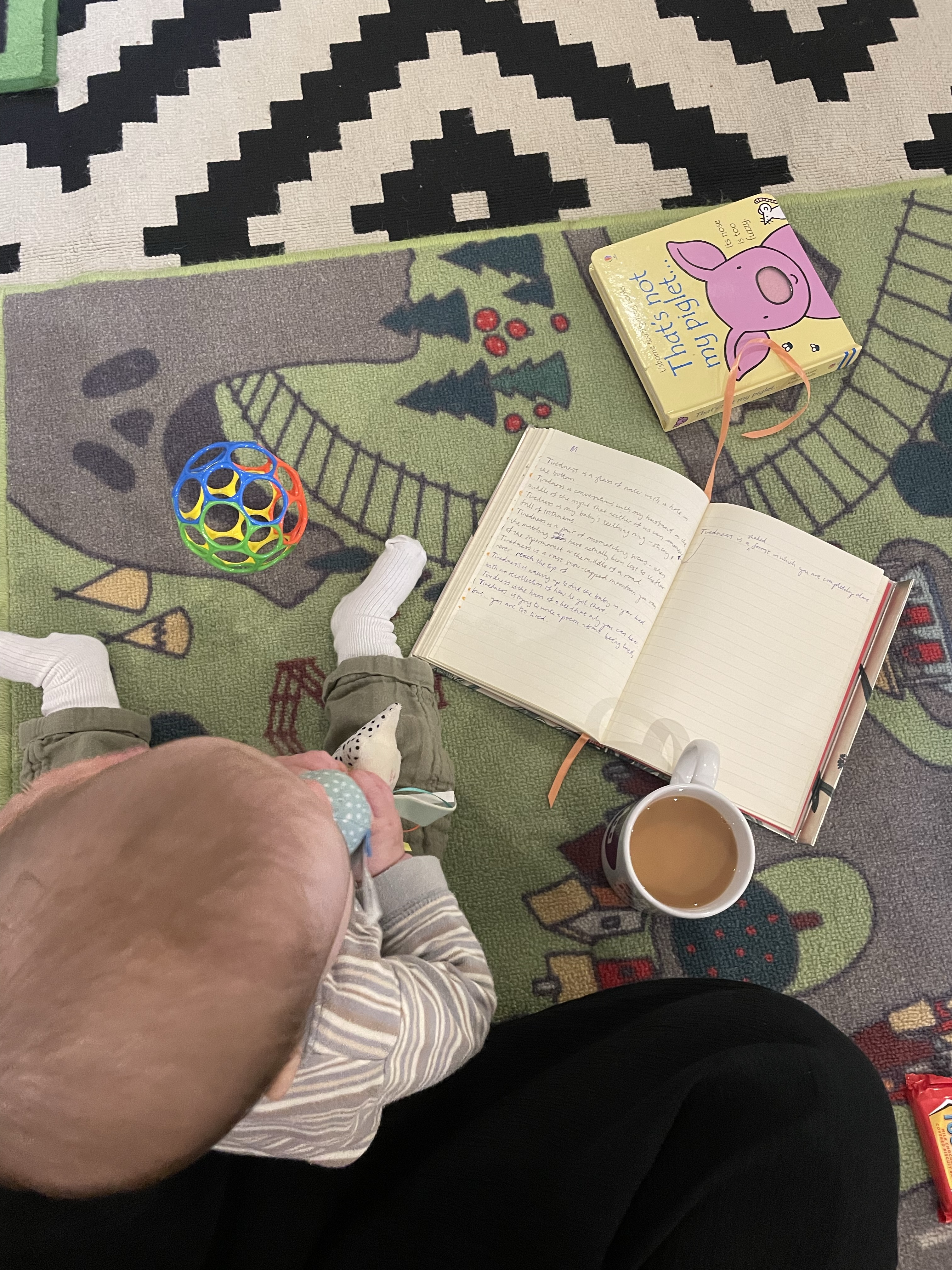 I didn’t really know what to expect when I arrived for the first session, but what I found was a warm, honest and raw space where we read and tried to write while our babies distracted us, and then shared our work if we felt comfortable. Poet and Me Mother Other founder Beth Godfrey guided us through the sessions with generosity and wisdom. Each week there were prepared extracts and writing prompts, but we were encouraged to write about whatever we wanted or needed to. I think I cried in every session at the braveness of other mothers sharing their words. I laughed a lot too. There was also a lot of wrangling my son while he flailed about and fussed and later crawled around causing chaos as he tried to chew every piece of paper he could get his hands on, including – ironically – my writing.